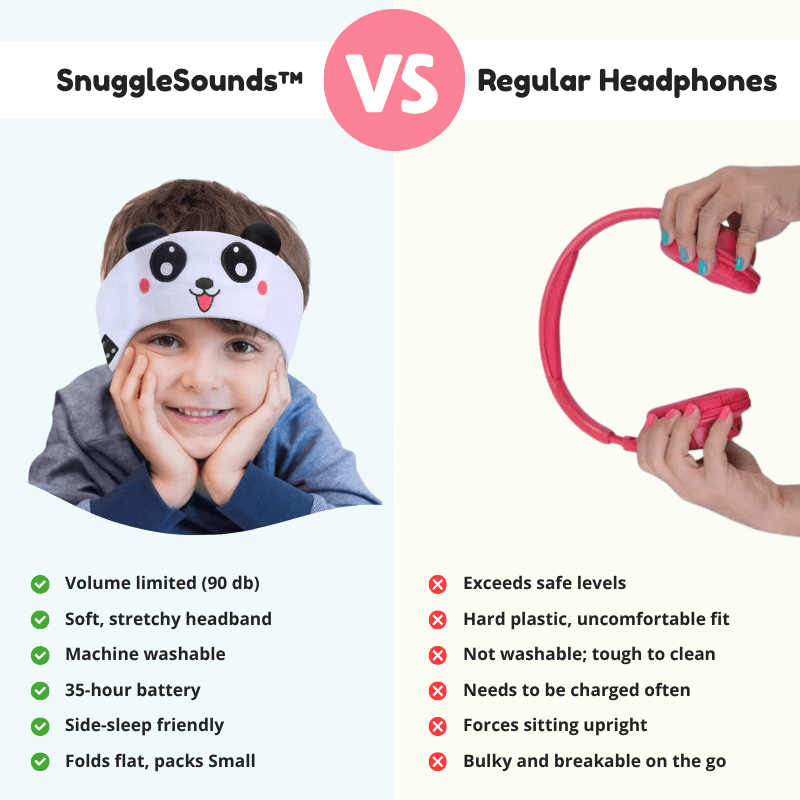 In every way. SnuggleSounds™ solve the three biggest problems: they stay on, they’re safe for young ears, and kids actually enjoy wearing them.