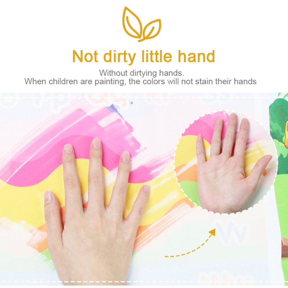 Everything is water-based, so there is no reason to worry; we do not use any paint or ink, so your child will be safe and your house clean. Made of soft raincoat fabric and water-resistant nylon material, you don't have to worry; the floor won't be damp.