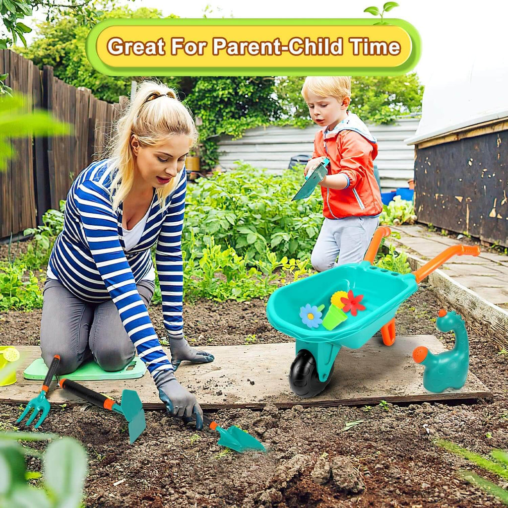 With a wheelbarrow, a watering can, and 4 gardening tools, your kid will be ready for any digging scenario. These are all professional-like tools, just designed so kids can easily use them.