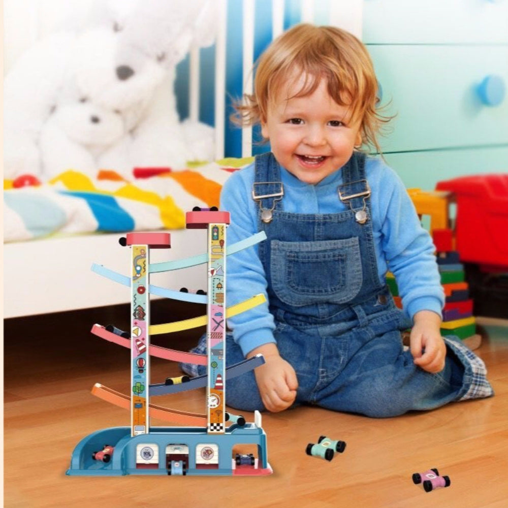 Don’t you just love that feeling when you get your child something that completely leaves them in awe? This awesome race track has cars, garages, interactive slides, a ramp, and everything else any toddler would love!